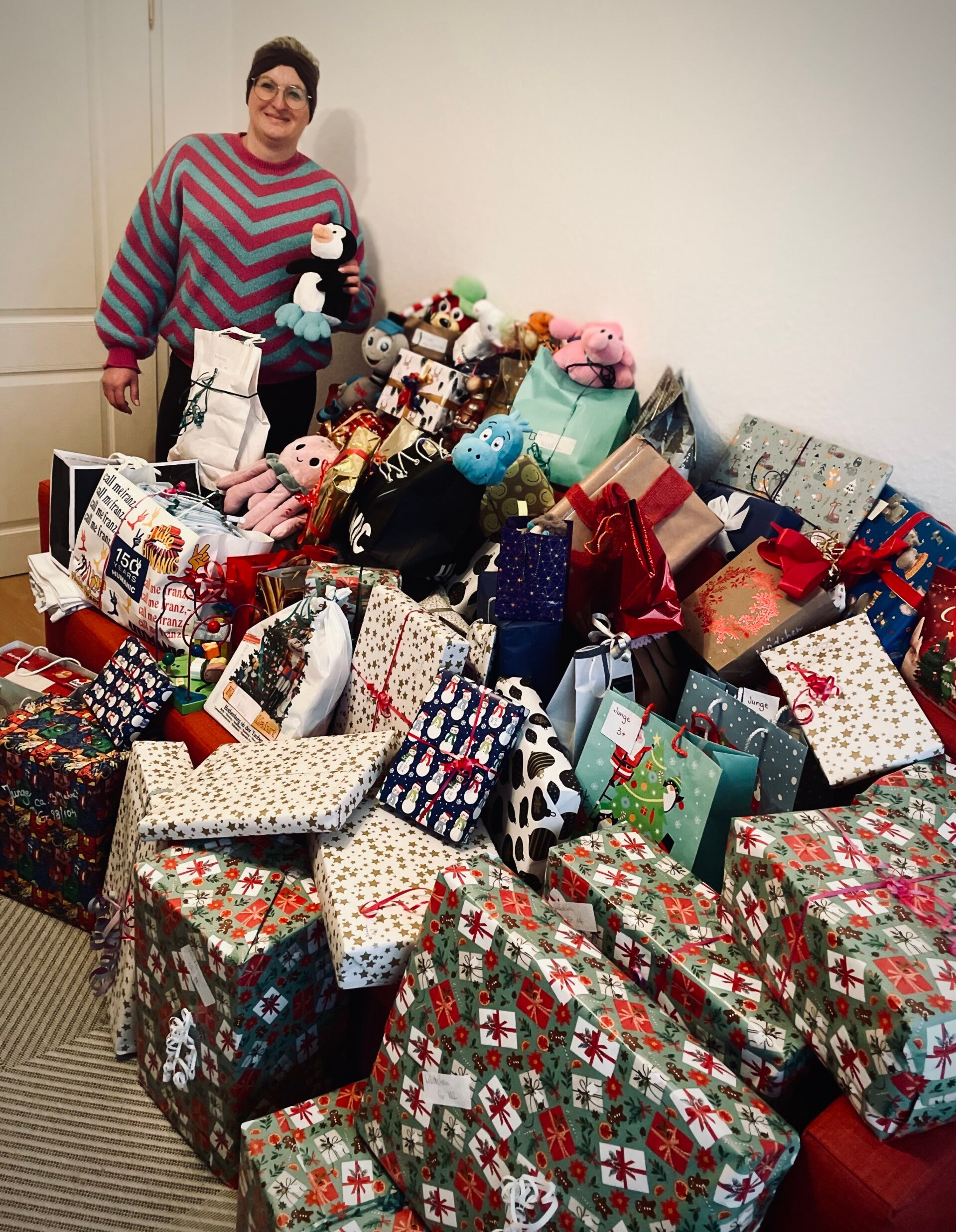 Anika: „Wir haben heute fast 200 Geschenke für bedürftige Kinder zur Rostocker Tafel gebracht.